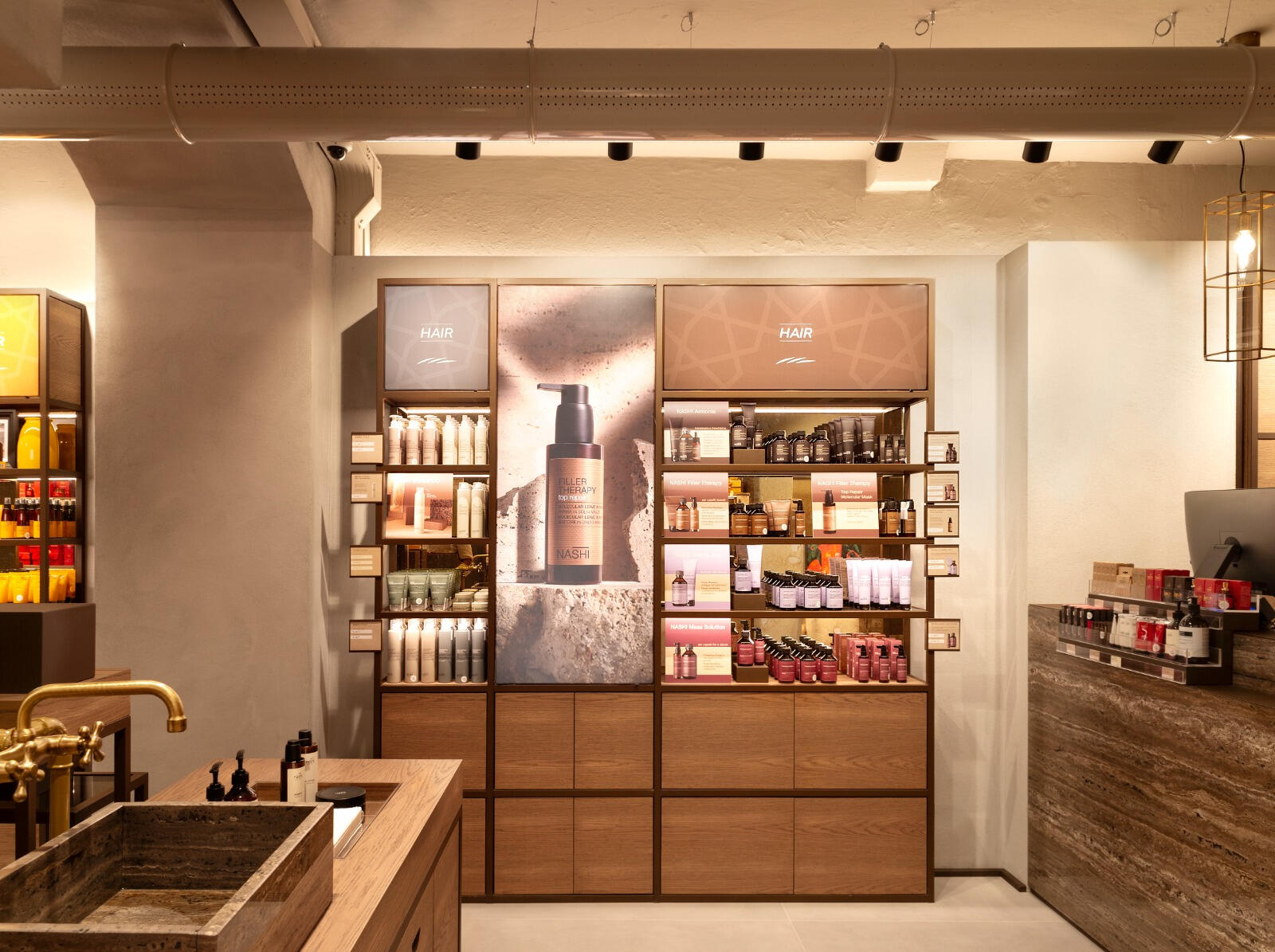 _In order to best highlight the refined products within the showroom, the lighting fixtures were minimized, using compact fixtures with narrow and medium beams to best accentuate every single detail and effectively guide the visitor's eye.