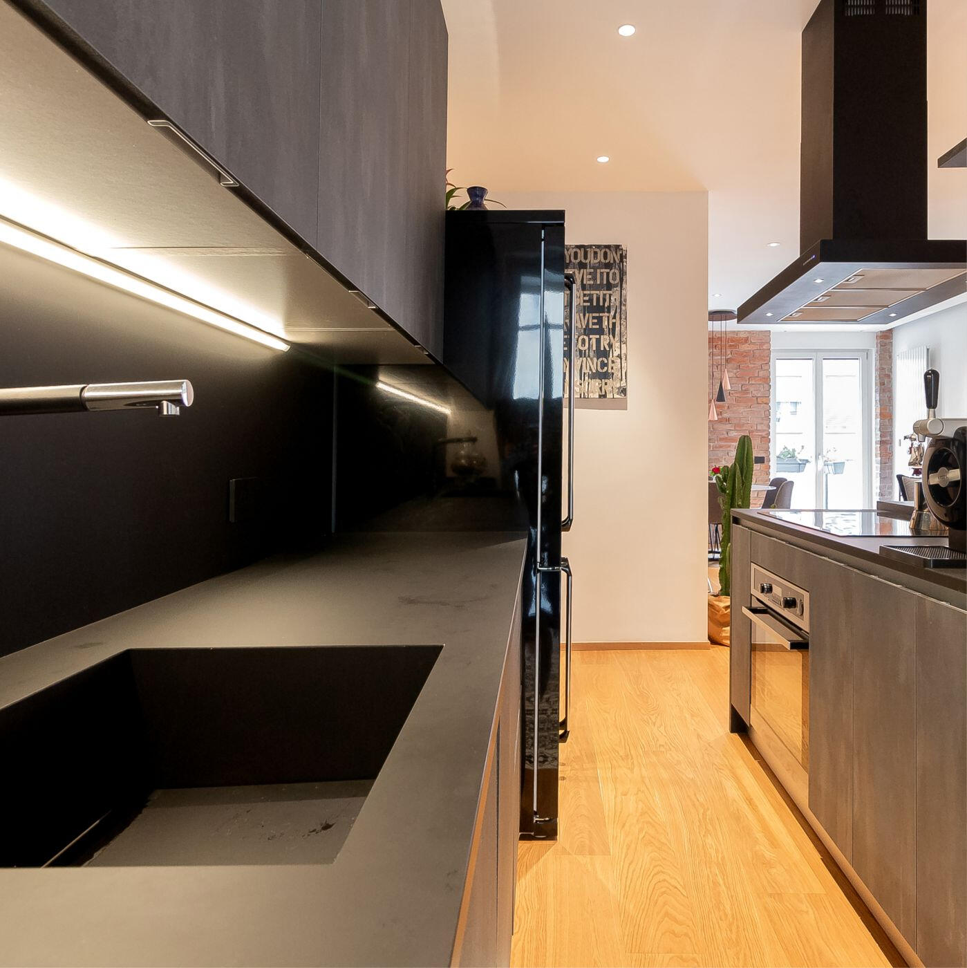 _Few, expertly placed light points and suspensions with custom finishes in the kitchen area delicately and silently decorate the environment, without sacrificing their functionality.